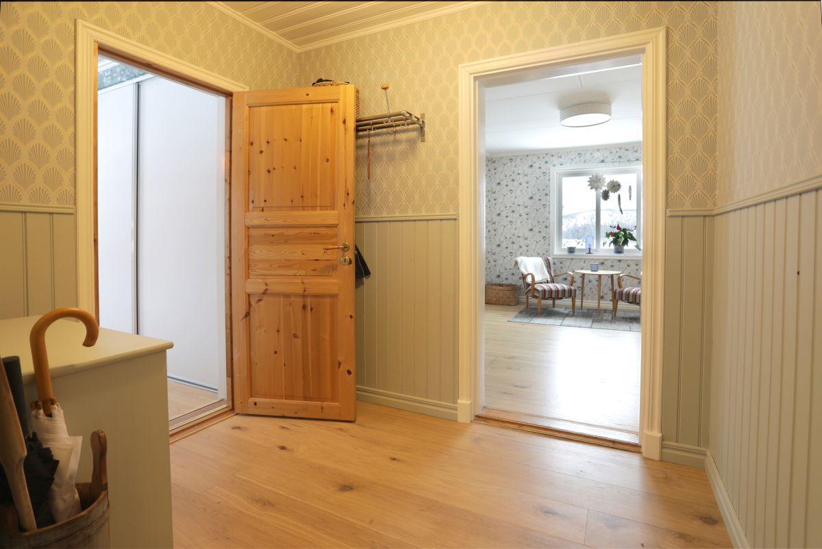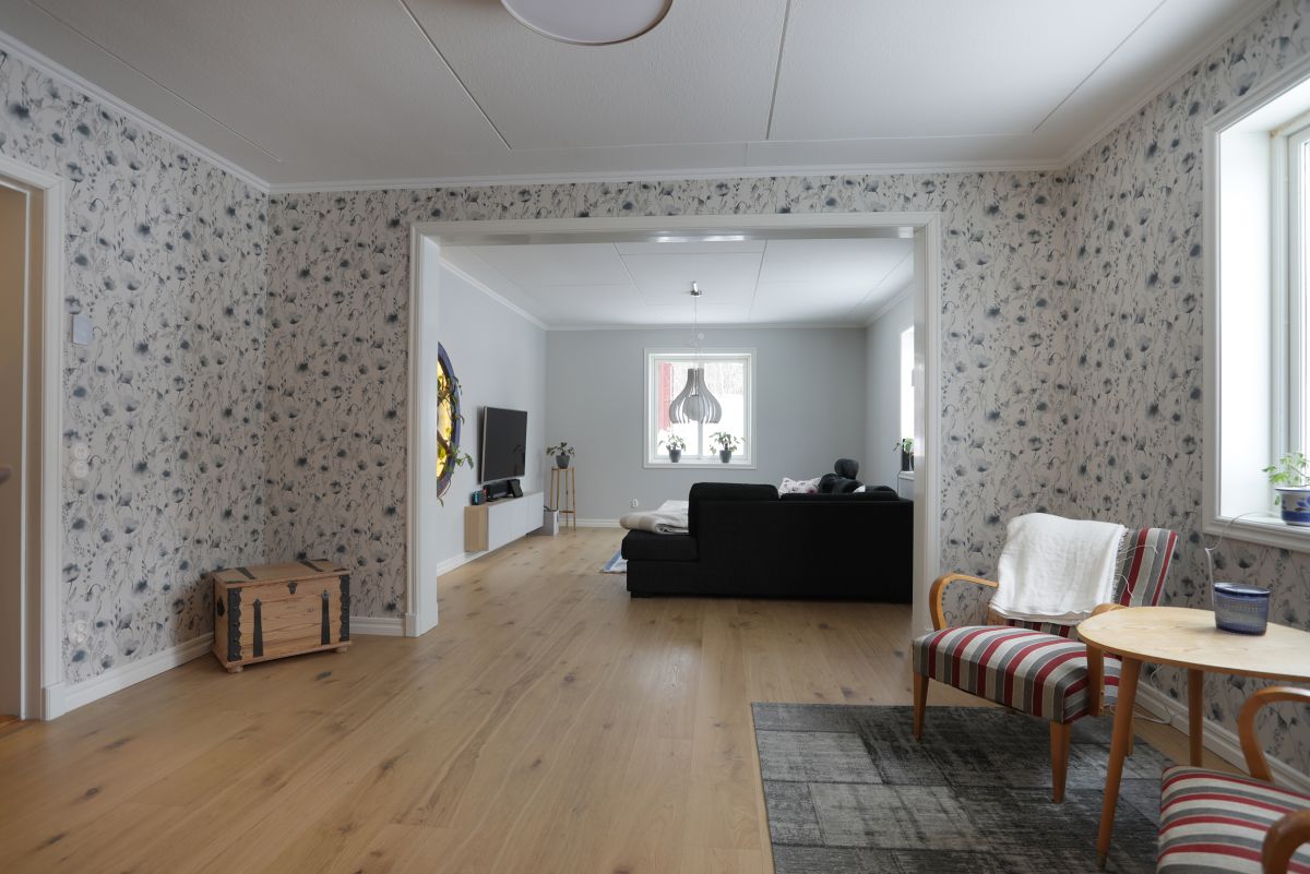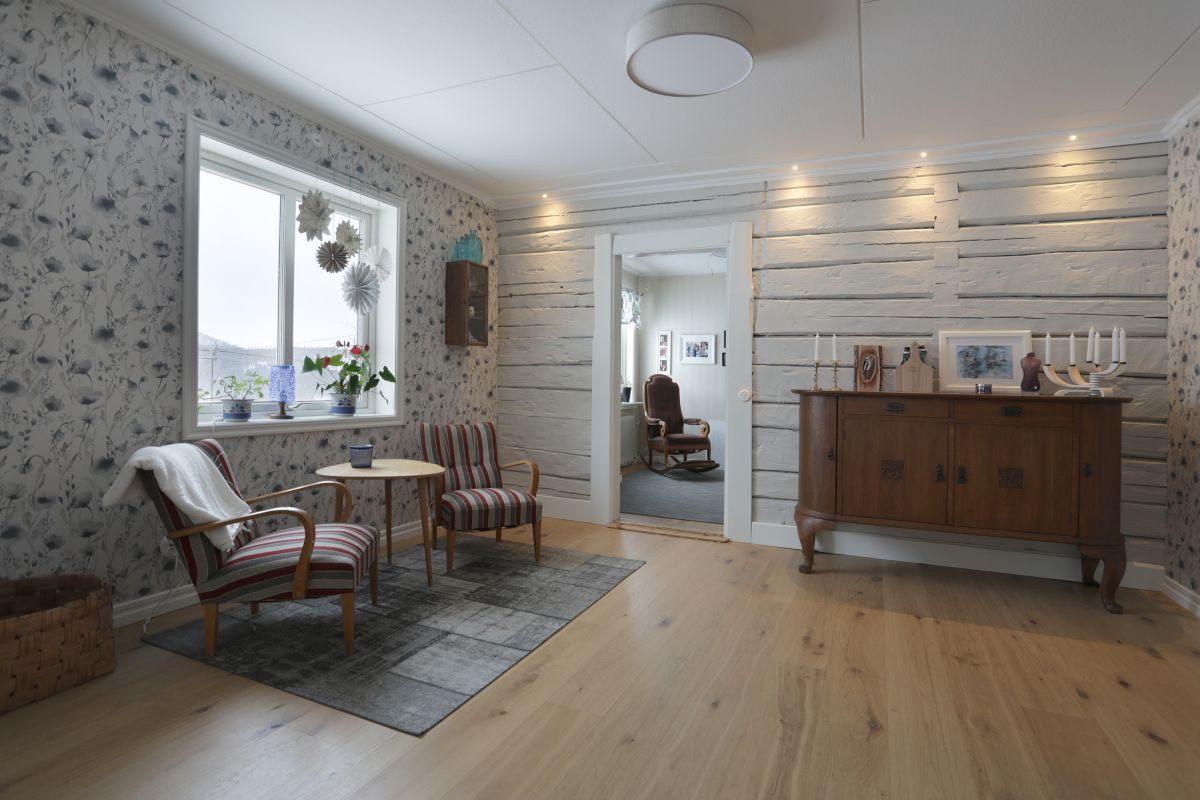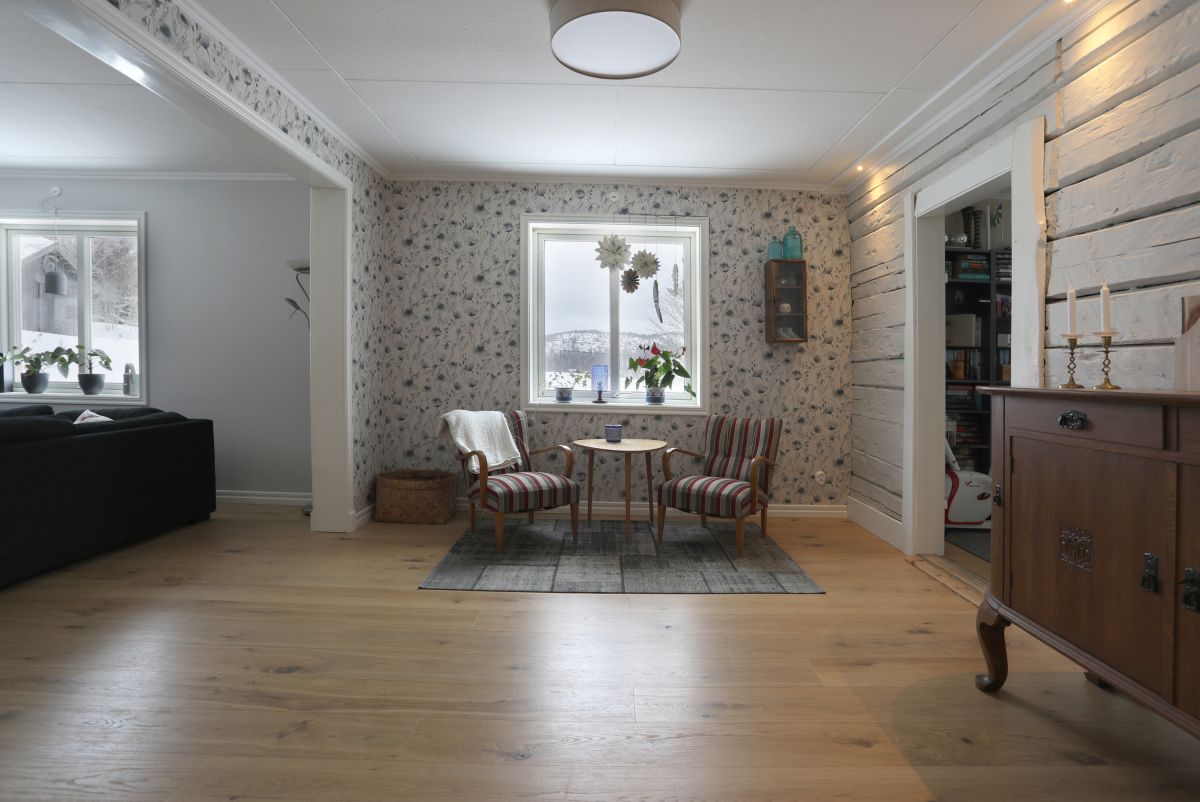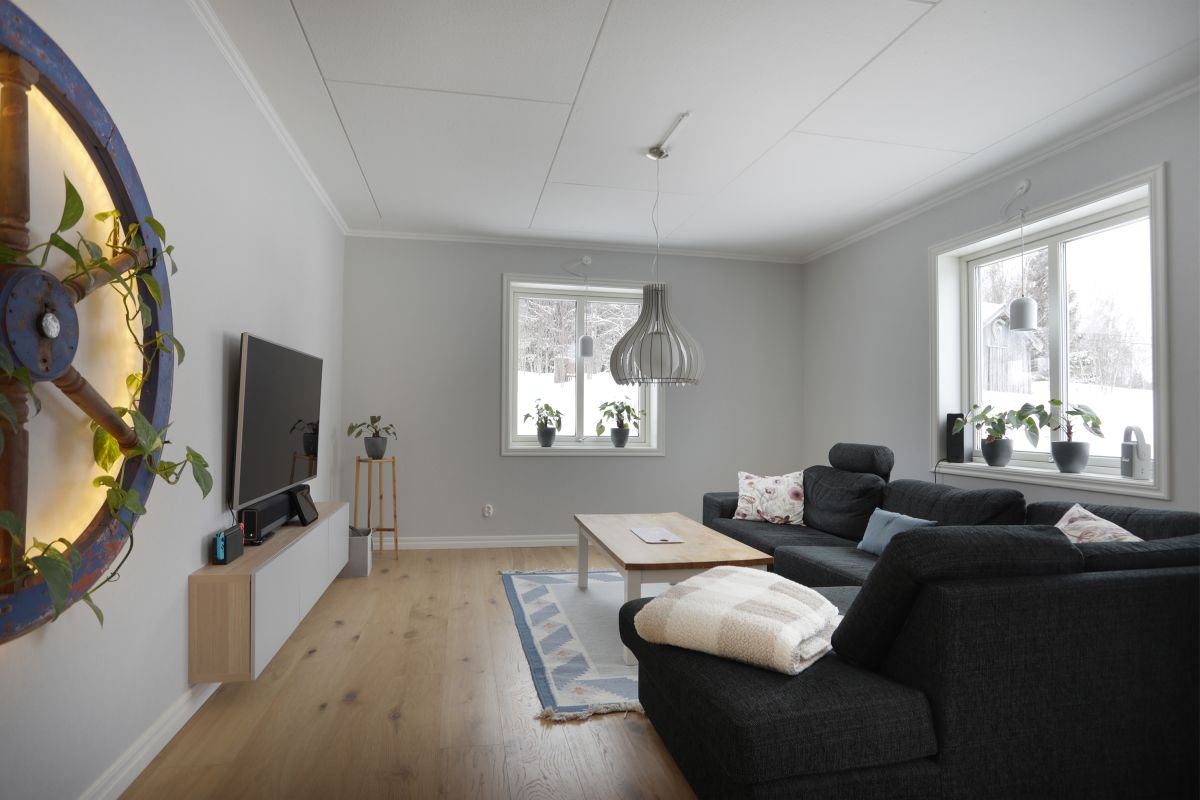 Nu har det som sagt gått några år och familjen har upptäckt vad smidigt det är med att pulkabacken finns runt knuten, nära till Skyttis skidspår, skolskjutsen som stannar utanför huset, inga långa bilköer och med det mer kvalitetstid. Några flyttankar har de inte, de har många planer på att fortsätta renovera och låta detta bli ännu mer sitt drömhem.