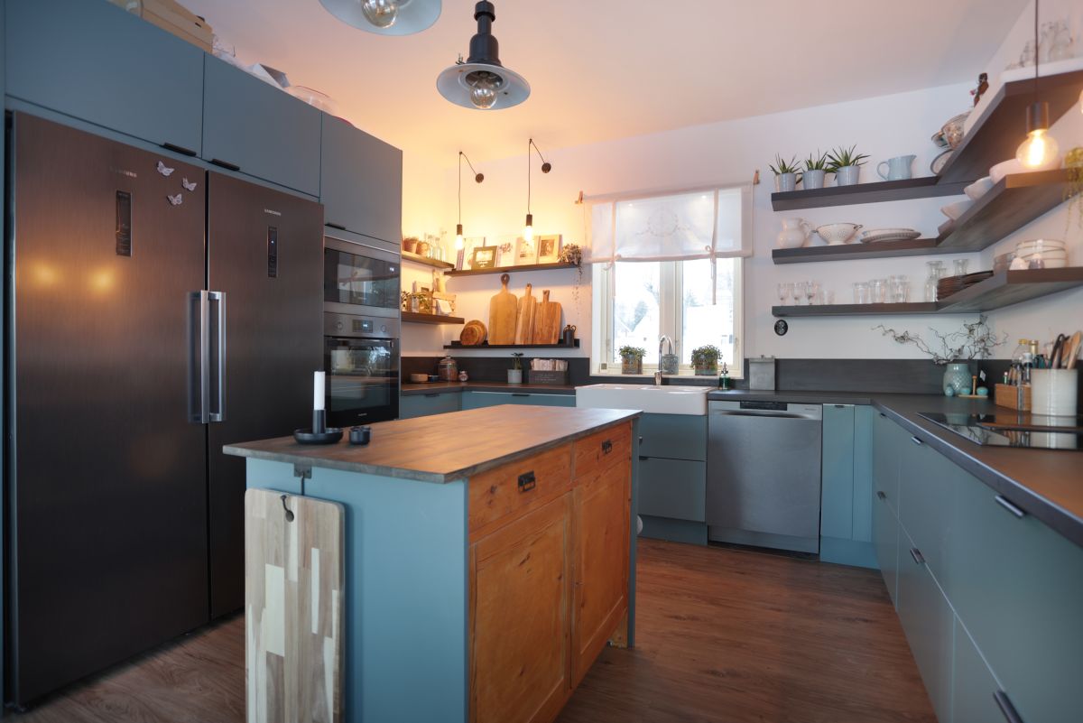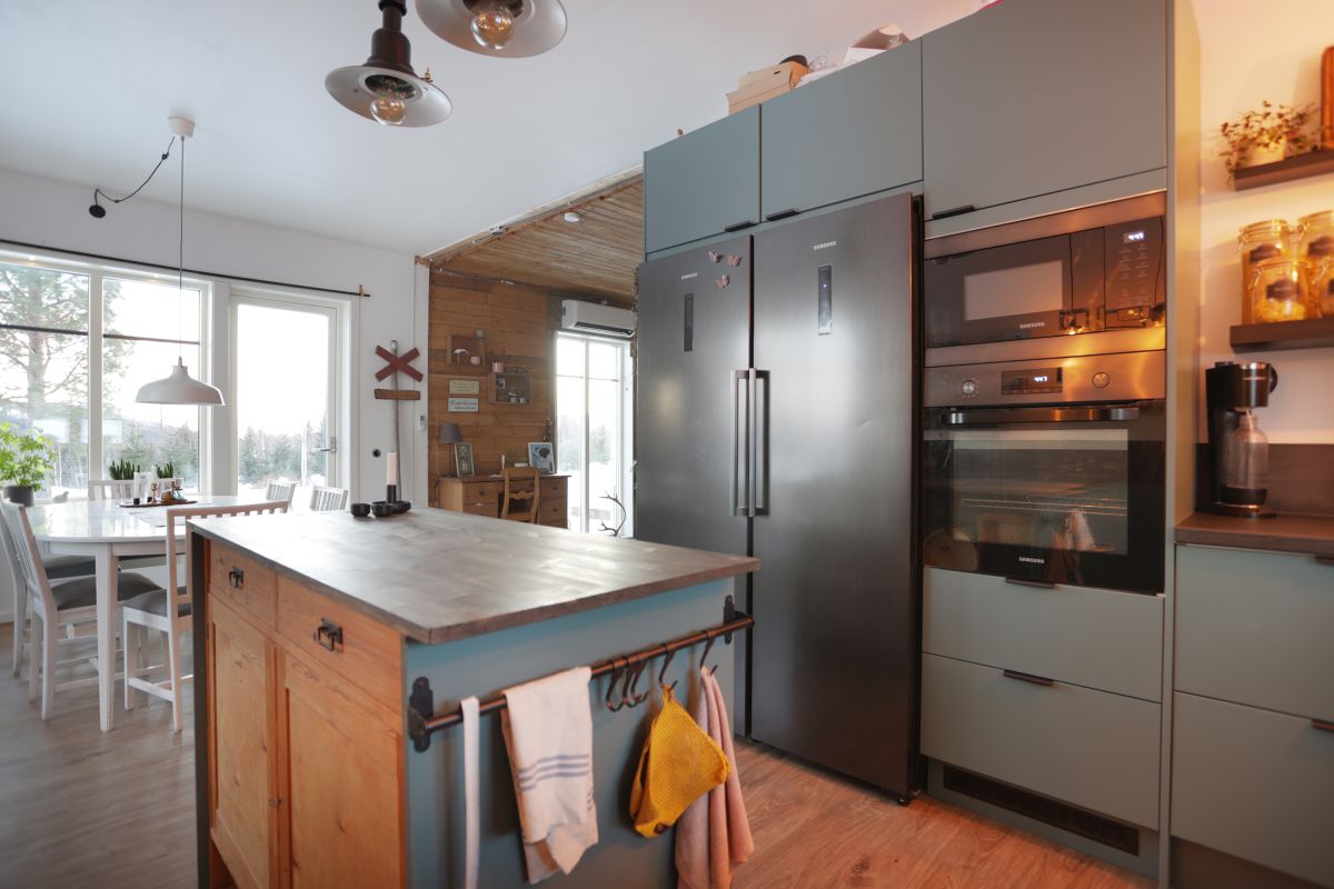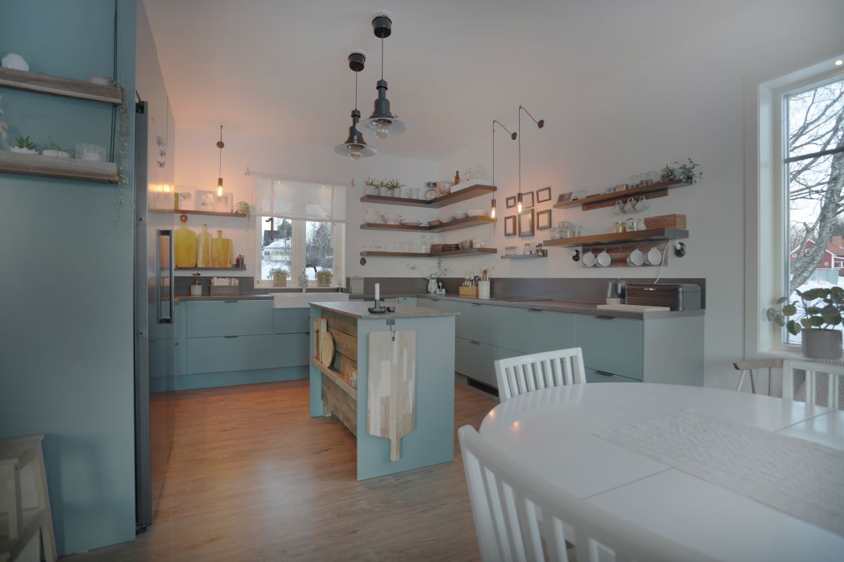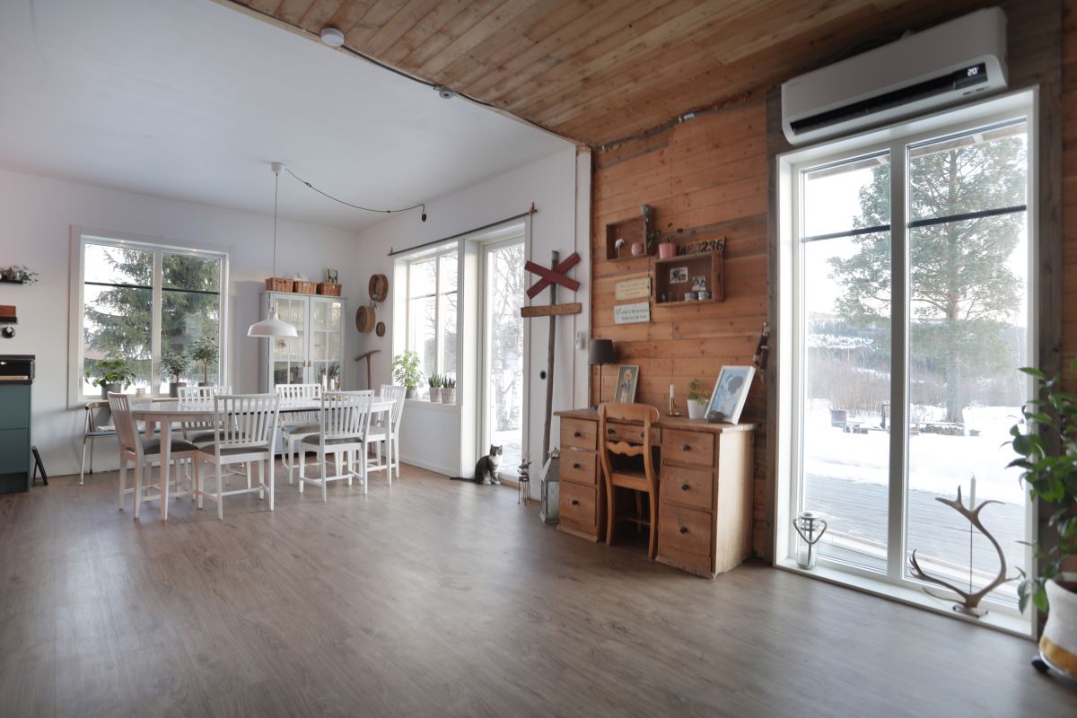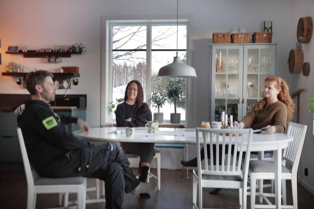 Ronja och Rickard kommer ifrån Umeå och har semestrat i området runt Skuleskogen. De gillade omgivningarna och kände att de skulle kunna tänka sig att bo där. Åldern på barnen var i den fas att det var dags att söka in på olika utbildningar och flytta hemifrån. Det var Ronja som först såg annonsen på Hemnet. I samma veva skulle hon skjutsa sin mormor från Umeå till Östersund så de bestämde sig för att köra förbi huset i Köpmanholmen för att kika. Ronja gillade det hon såg och tog kontakt med oss. Richard och Ronja kom på visning och de såg vilket bra läge huset hade och den vackra utsikten. De såg även husets potential, vad de kunde göra för att passa in i deras liv. De första de gjorde var att bygga två altaner, sedan började de med utbyggnaden. De kontaktade lokala entreprenörer och så var allt i gång.